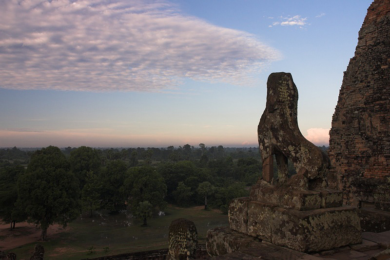 Guardian lion watching over Pre Rup at sunrise.