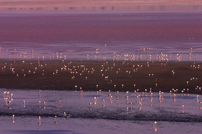 A small portion of the large number of flamingos nesting in Laguna Colorada.