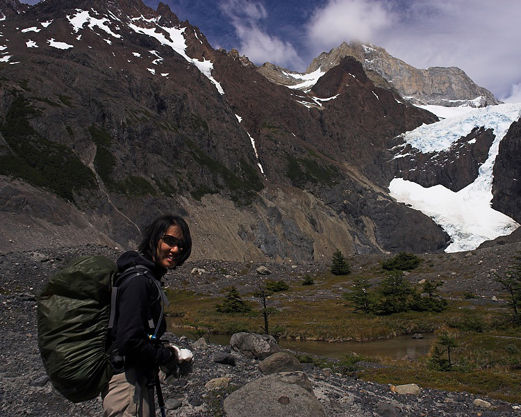 Serene with Glaciar los Perros in the background. Ray had a very painful experience with dust getting into his eye at the overlook.
