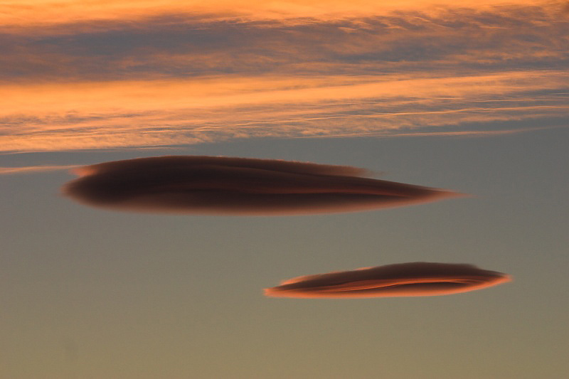 Lenticular clouds at sunset. These clouds appear very frequently in Patagonia.