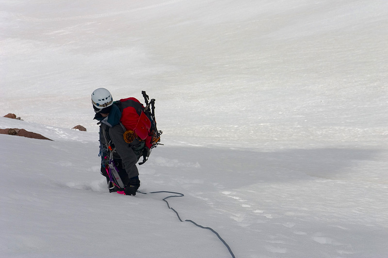 Paul checking out the avalanche from last night. It was quite prominent as we went up Casaval Ridge.