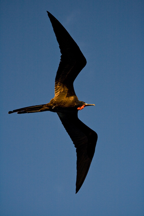 Frigatebird flying over the Monserrat II at sunset