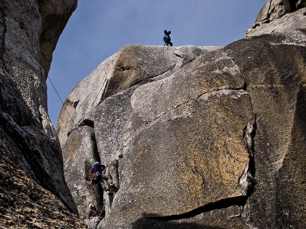 Climbers on Lost Arrow Spire, Yosemite, USA