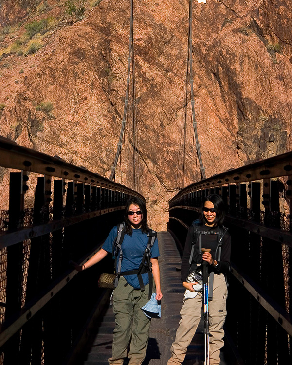 Eileen and Serene looking cool on the bridge leading to Phantom Ranch. Taken by Ray Woo.