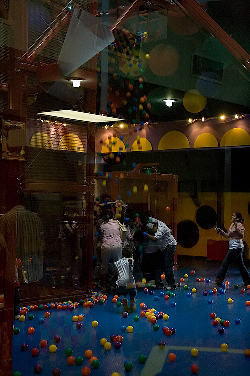 Guatemalans being pelted by falling balls in the Museo del Nino.