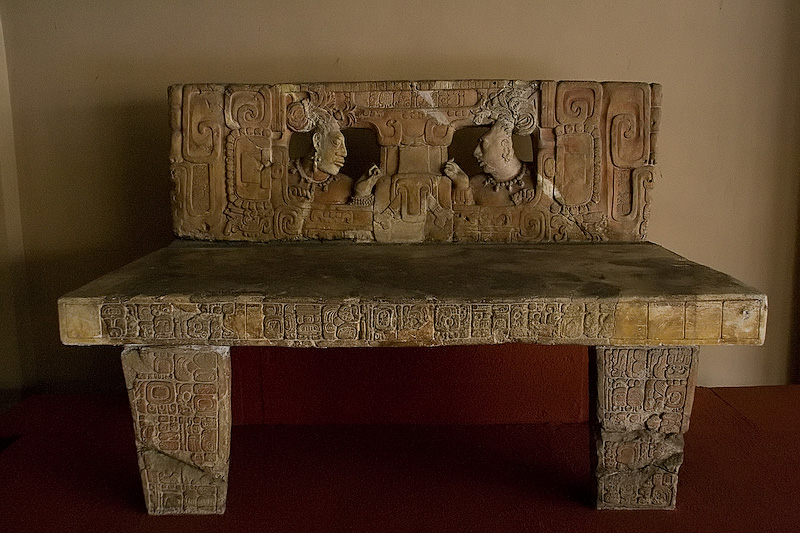 Magnificant Throne 1 with two carved heads excavated from Piedras Negras (means black stones).