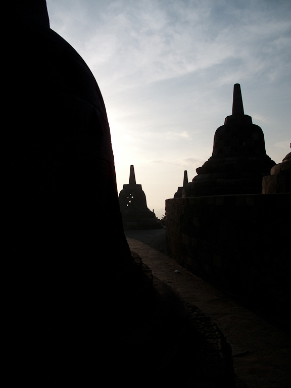 Stupas at the upper platforms at Borobudur. Taken by Serene