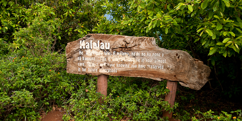 Sign marker for Kalalau Valley. The beach is perhaps another half a mile away.