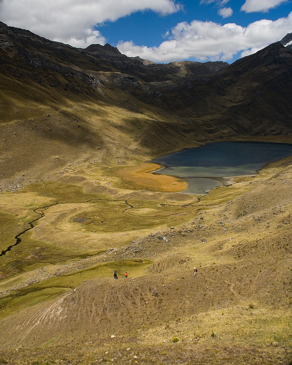 Ray, Zac, and Serene descending to Laguna Mitococha (4230 m).