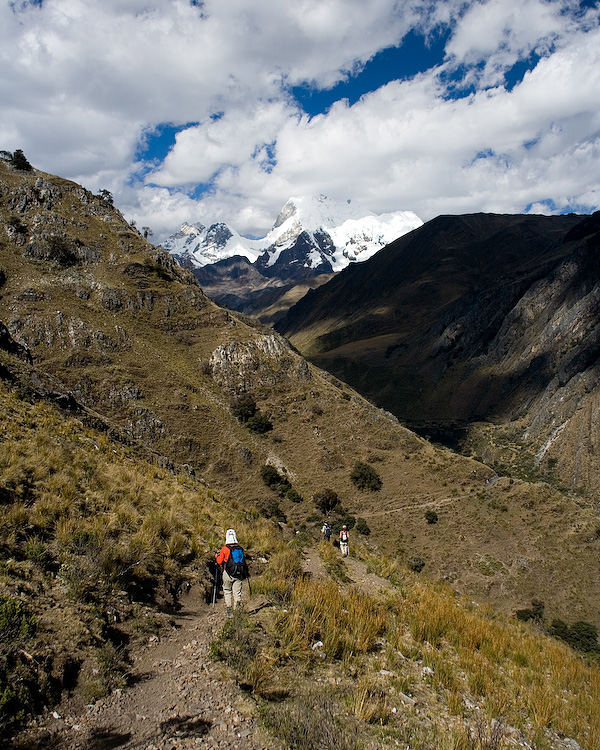 Serene, Emily, and Zac hiking down the valley from Macrash Punta to Laguna Jahuacocha.