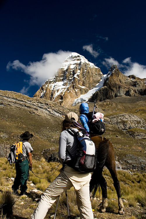Zac, Emily, and Serene looking at Trapecio (5653 m).