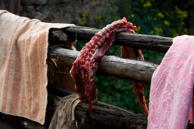 Remains of the sheep for our pachamanca in Huayllapa.
