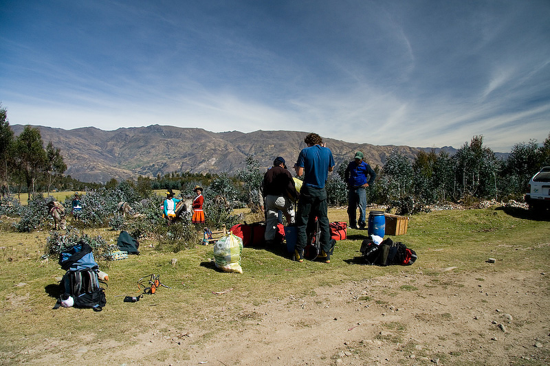Loading the donkeys in Pashpa for the hike into Ishinca base camp.