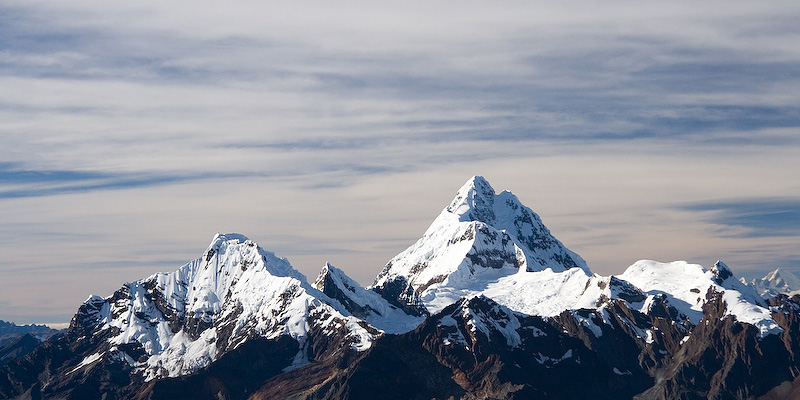 Huantsan (6395 m) right and San Juan (5843 m) left from the summit of Ishinca.