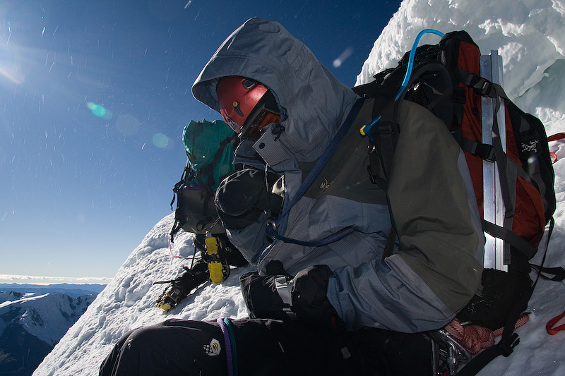 Jared waiting for our turn to get onto the last two pitches to the summit of Tocllaraju.