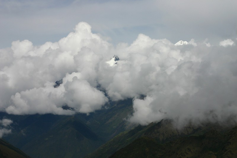 Salkantay is just peeking over the clouds.