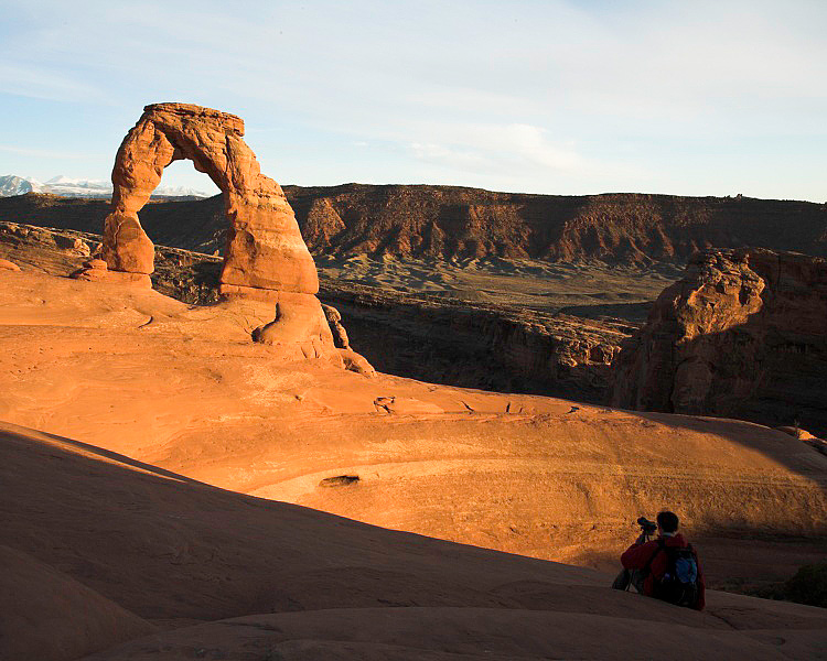 The appearance of being alone at Delicate Arch at sunset in Arches National Park. Taken by Eric Chan.