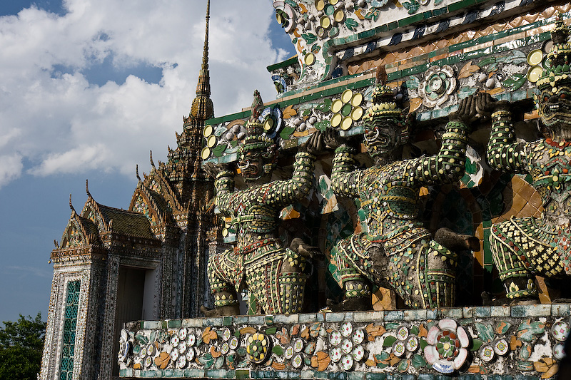 Polychromatic flowers and decorations made from porcelain in Wat Arun.