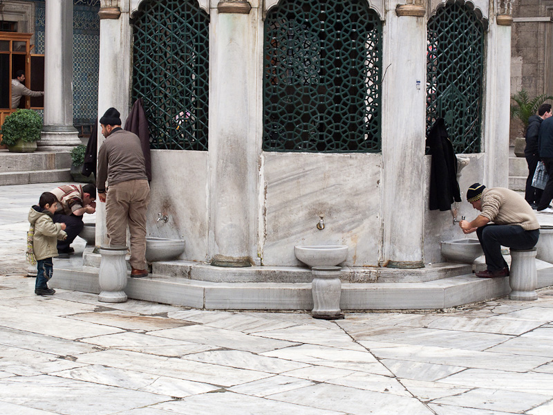 Men washing before prayers in the fountain of the New Mosque of Mother Sultan