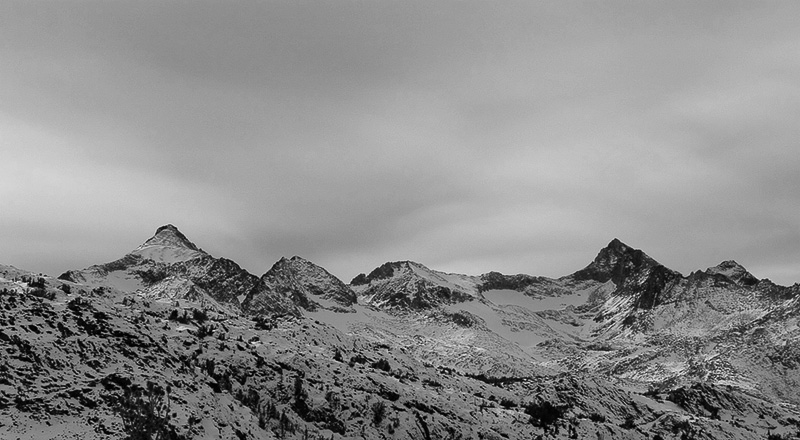 The Ritter Range. Mount Rodgers is on the left and Mount Lyell on the right.