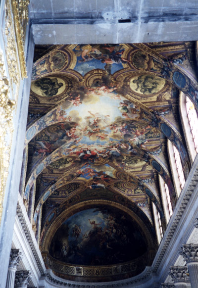 The intricately painted ceiling of the chapel.